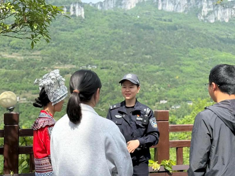 恩施州公安局从机关抽调30名精干警力,专门支援恩施大峡谷和女儿城景区,在景区多个点位开展巡逻防控,为游客答疑解惑、提供帮助,提升见警率和管事率。