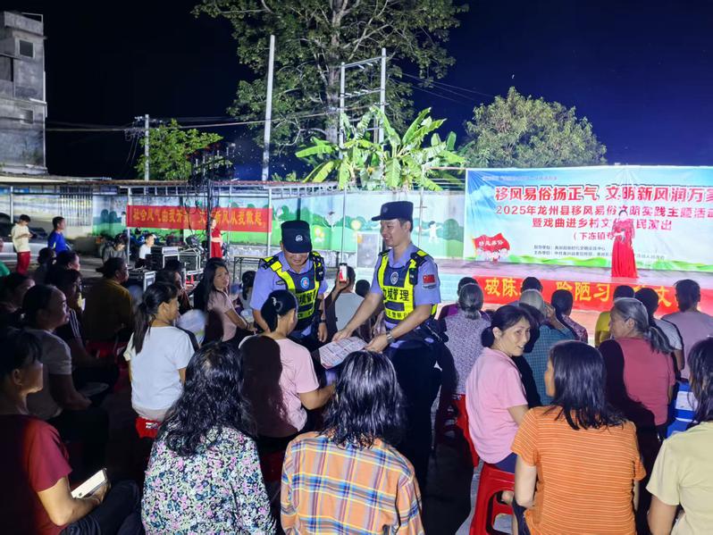9月24日,崇左边境管理支队那花边境派出所走进戏曲下乡村惠民演出点开展反诈骗、反偷渡、反走私等方面宣传活动。