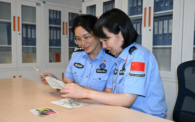 就在昂旺措姆提笔写信的同时,皇岗口岸临时旅检场地的出境大厅里,江琛蕾正身着藏蓝色警服,在“中国移民管理”标识牌下专注地核验旅客信息。身后是川流不息的通关人群,金属栏杆分隔出的通道延伸向远方。这是移民管理警察专业高效服务的常态,也是这场跨越千里对话的起点。