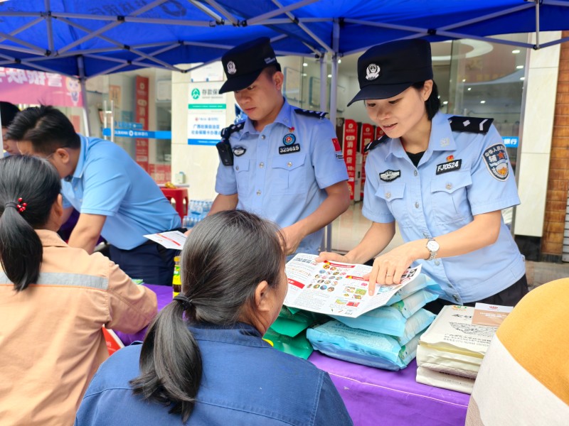10月11日,广西崇左边境管理支队下雷边境派出所联合桂林银行下雷支行在银行门口搭建宣传角,开展“反诈护航·守护钱袋”主题宣传活动。活动通过现场签到领生活用品的形式,精准吸引老年人等易受骗群体,将反诈知识送到群众手上。