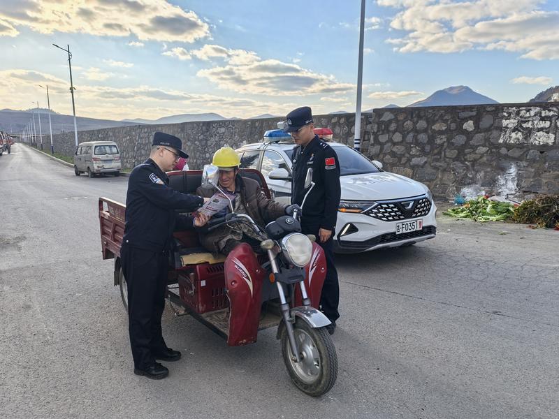 民警一方面引导农机车、运粮车有序通行、规范会车,提醒驾驶员 “减速避让行人、注意路口盲区”;另一方面向过往农户、司机发放交通安全手册,现场讲解农机载人、违规超载等行为的危害。遇到农户问路、车辆轻微剐蹭等情况,民警当场协调解决,避免耽误秋收进度。