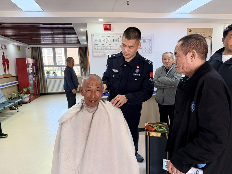 家常聊罢,民警们便立刻忙活起来,纷纷切换角色—— 有的化身“保洁员”,拿起扫帚、抹布,仔细清扫房间地面,认真整理床铺被褥,将老人们的住处收拾得干干净净、整整齐齐;有的则变身“理发师”,自带理发工具,耐心询问老人们的发型喜好,娴熟地为大家修剪头发,让老人们以清爽利落的面貌迎接节日的到来。与此同时,大队还为敬老院的老人们精心准备了牛奶、新鲜水果以及洗漱用品等慰问品,民警们亲手将慰问品送到每位老人手中,让大家真切感受到这份关心与关爱。