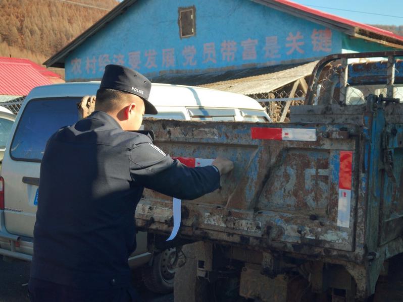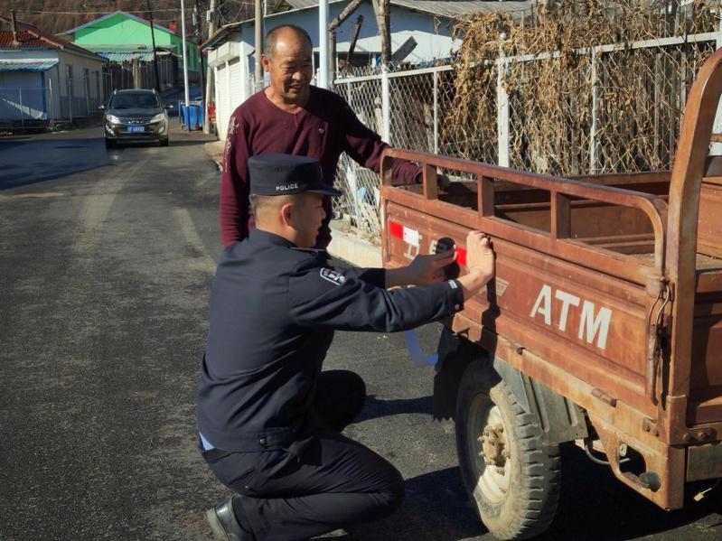 近日,马鹿沟边境派出所责任区民警聚焦乡村交通安全隐患,开展农用车辆反光贴张贴服务,以“微举措”守护群众出行安全,用实际行动践行“我为群众办实事”。