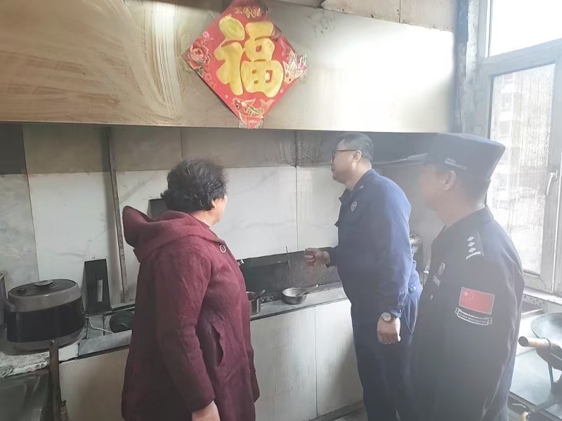 在某餐饮店检查时,民警发现后厨燃气管道接口松动、疏散通道堆放杂物且违规使用大功率取暖器,当即督促负责人现场整改,并结合辖区冬季火灾防控特点,耐心讲解燃气安全使用规范、火灾应急处置流程及大功率电器安全使用注意事项。