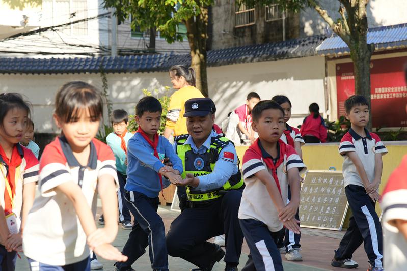为切实增强青少年国家安全意识、法治观念与自我保护能力,近日,广西崇左边境管理支队爱店边境派出所民警走进辖区爱店中心小学,组织开展了一场以“警色进校园,安全伴成长”为主题的宣传教育活动。活动将军体拳教学、警用装备体验、戍边故事讲述等环节融为一体,以沉浸式互动体验,让孩子们近距离感受警营风采,在寓教于乐中接受国防与安全教育,为校园注入一抹独特的“警色”。