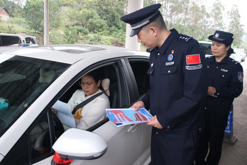在该站执勤现场,民警将普法宣传与边境管控工作有机融合,选择人流量、车流量密集时间点,悬挂起“尊崇宪法、学习宪法、遵守宪法、维护宪法、运用宪法”等主题横幅,整齐摆放宪法主题宣传展板,并在查验证件、引导车辆的同时,向过往群众和司乘人员发放宪法宣传手册、法治便民服务卡,细致解答过往群众关于出入境手续办理、边境管理相关规定等咨询,引导群众树立“办事依法、遇事找法”的法治观念。