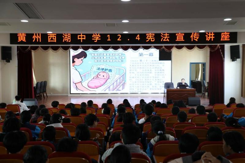 12月3日,适逢第十二个“国家宪法日”,湖北省黄冈市黄州区人民检察院走进西湖中学,开展以“宪法进校园 法治护航育新人”为主题的普法宣传教育活动,旨在弘扬宪法精神,厚植青少年法治信仰,助力未成年人健康成长。