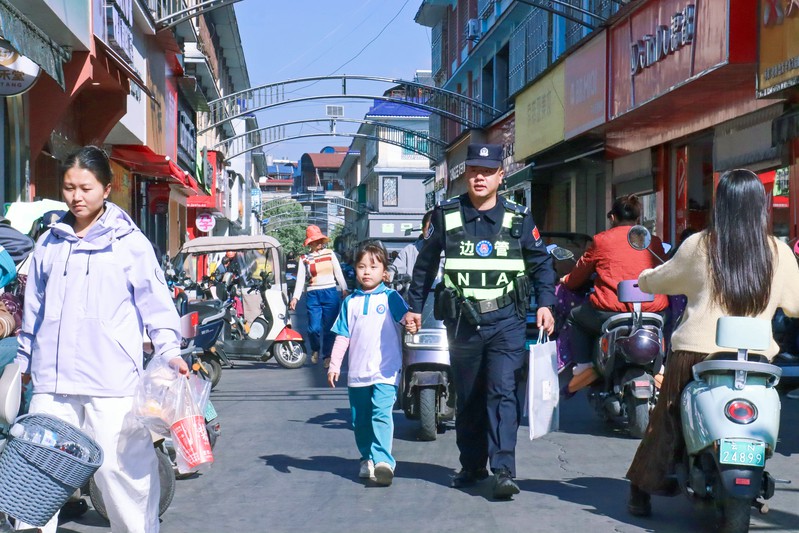 12月12日,平原边境派出所民警张森在盈江县第一小学开展护学岗时,发现一名因联系不到家长哭泣的小女孩。 民警迅速安抚女孩情绪,通过其描述信息,联动 “象城义警队” 将女孩照片发送至对应社区警务群。义警队员立即上门联系,15分钟后成功找到女孩的父亲。