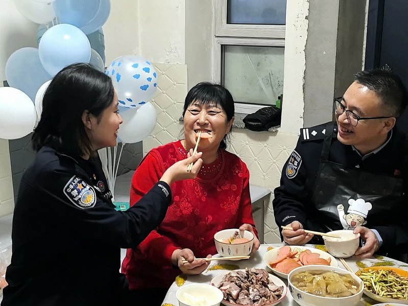 “这群孩子就跟自家孩子一样,陪我吃饭、听我唠嗑,还帮我检查安全,这个元旦过得太暖心了!”独居老人李阿姨握着民警的手,开心的地说道。