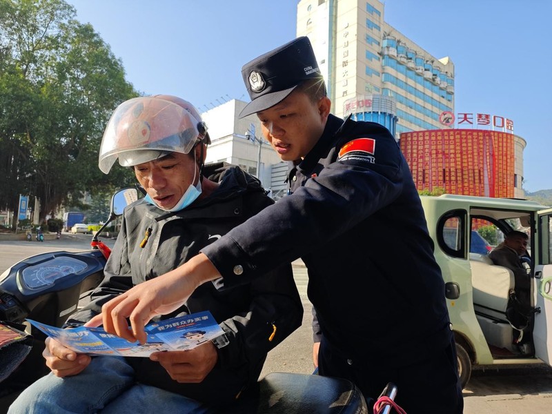 凭祥边境派出所通过“线上+线下”宣传模式,线下在人员密集场所设立宣传点2个,发放安全手册、反诈宣传单200余份,现场演示灭火器使用方法、讲解一氧化碳中毒急救常识;线上依托社区微信群、短视频平台,推送冬季防火防盗、防诈反诈、交通安全等提示信息300余条,制作发布通俗易懂的安全宣传短视频8条,让安全知识“飞入寻常百姓家”。