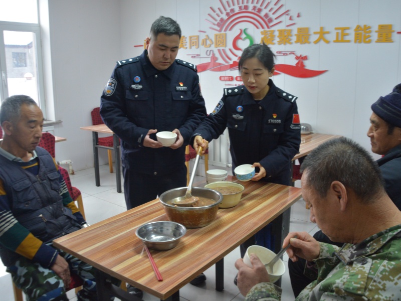 活动中,民警将亲手熬制的腊八粥端到老人手中,热情询问他们的身体近况和生活需求,叮嘱他们注意防寒保暖、保重身体,并提醒有困难及时向派出所反映。温暖香甜的粥羹凝聚着深情关怀,老人们连连道谢,脸上洋溢着笑容。