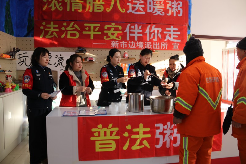 为了让新修订的《中华人民共和国治安管理处罚法》真正走进群众、落地生根,同时传承腊八民俗、拉近警民距离,新市边境派出所木兰警务队巧思妙想,将“暖胃腊八粥”与“贴心普法课”相结合,精心策划了此次主题活动。在活动前,女民警们利用休息时间采购糯米、红豆、红枣等食材,亲手熬制了一锅锅香甜软糯的腊八粥,用诚意与温度搭建起警民沟通的桥梁。