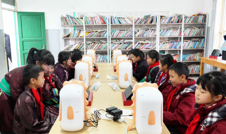 三方共同为两所小学各打造了一间“涟心”多媒体阅览室。神通科技集团捐赠了智慧屏、智能读写台、护眼学习机等设备,并送来200册崭新图书;皇岗边检站执勤十三队了解到学校缺少午休床位,特意购置一百张折叠床,方便师生休息;万华化学集团则准备了特色爱心礼包,里面的笔、本、水杯、羽毛球、颈枕等,大多采用企业自产的环保材料制作,兼顾学习与生活需要。