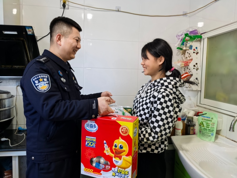 除了学业上的精准帮扶,“警察爸爸”们更时刻牵挂着孩子们的生活冷暖。他们时常自掏腰包,为孩子们购置文具、书籍、衣物和食品等生活学习物资,每逢节日还会精心准备礼物,上门送到孩子手中。得知留守儿童小宇冬天缺少厚外套,民警第一时间挑选合身的棉衣送到家中;了解到孩子们渴望阅读课外书,便收集各类儿童读物,搭建起流动便捷的“爱心书架”;看到部分孩子吃饭不规律,就时常带着热气腾腾的饭菜上门探望、陪伴用餐。“警察爸爸送来的不仅是物资,更是家人般的牵挂与温暖,让我们在外打工也能安心踏实。”一位留守儿童家长通过视频通话,向民警真挚表达谢意。