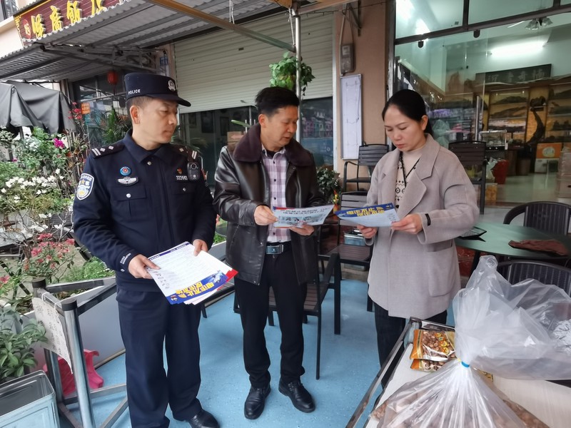 “阿叔阿婶,春节快到了,骗子也可能在冲‘业绩’,凡是提到钱、要转账的,多留个心眼,多问问子女,拿不准的直接报警!”友谊关边境派出所覃红森副所长操着一口熟练的本地白话,将手中的反诈宣传单递到一位老年居民手中,声音洪亮而恳切。旁边,周梅初则用越南语夹杂着本地话,正向几位越南籍商户解释着中国关于出入境管理的法律规定,手势生动,语调平和。