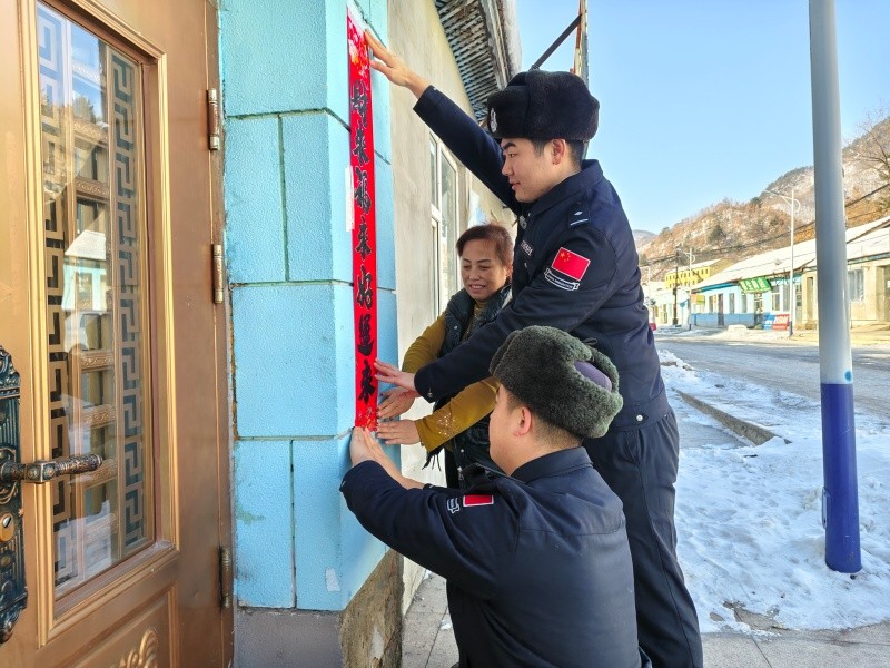 新春将至,年味渐浓。2月10日,吉林白山边境管理支队长川边境检查站组织民警深入辖区开展“迎新春、贴春联、送祝福”主题活动,把浓浓的年味和真切的关怀送到群众身边,用实际行动架起警民连心桥。
