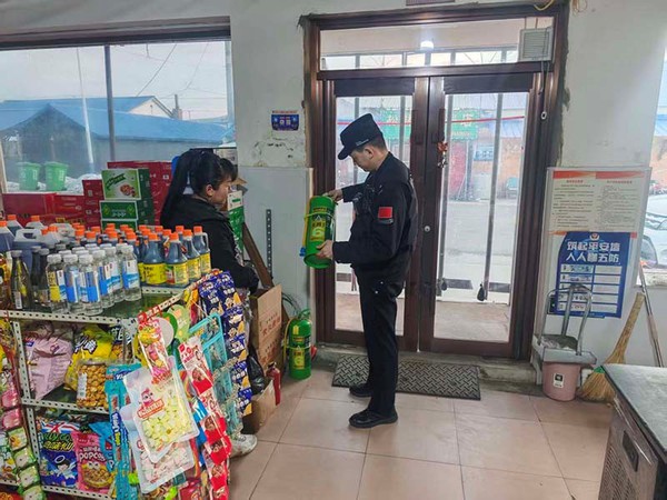 “灭火器要放在显眼且便于取用的位置,不能让它‘睡’在角落里。”在辖区一商店内,民警一边帮助店主将灭火器移至门口,一边耐心讲解应急处置常识。检查间隙,民警向各场所从业人员发放了安全防范宣传单,结合冬季火灾特点,普及防范一氧化碳中毒、安全燃放烟花爆竹等知识,并手把手指导部分店员操作使用消防器材,进一步提升群众的自防自救能力。
