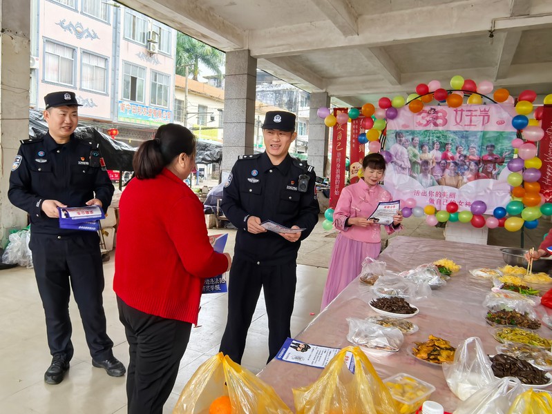 2026年3月8日,广西崇左边境管理支队科甲边境派出所借力辖区群众庆祝“三八”国际妇女节活动契机,深入街头巷尾开展涉边违法犯罪奖励公告宣传,将法治安全知识融入节日氛围,取得良好宣传成效。