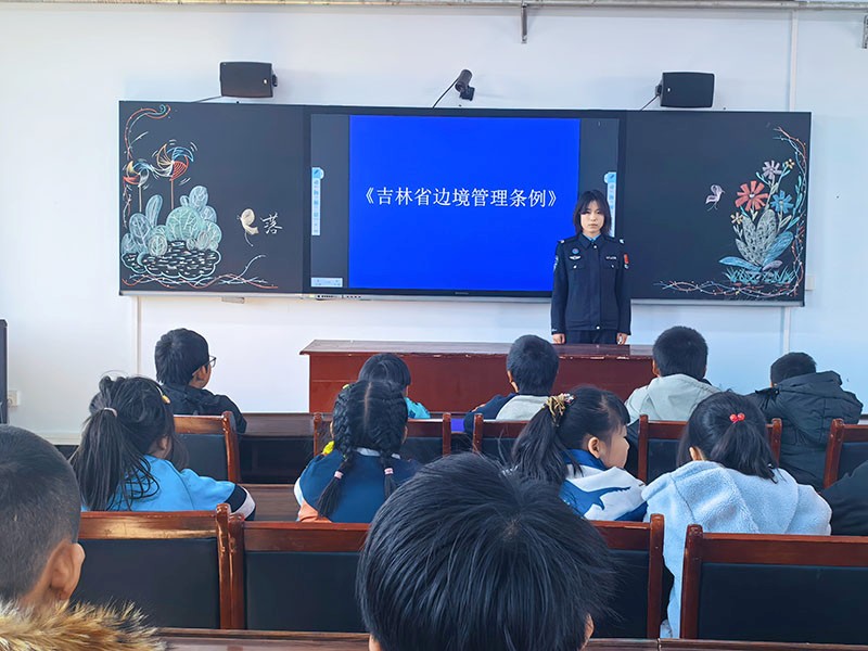 课堂上,民警结合边境地区实际,用贴近学生生活的语言和真实案例,通过互动问答、情景警示、现场答疑等形式。围绕交通安全、校园活动安全、消防安全、心理健康等内容展开讲解,将法律条文转化为生动易懂的安全常识,教育引导同学们增强自我保护能力,远离危险,抵制不良行为,全方位守护青少年健康成长。同时,民警立足边境管理职责,围绕国界保护、边境通行、界江(湖)管理、无人机规范使用、禁止非法越界等核心内容,通过条例讲解、小剧场解读等方式,向同学们普及2026年新发布的《吉林省边境管理条例》。民警深入讲解了公民守边护边的法定义务,明确擅自越界、损坏界标、违规作业、违规升空飞行器等行为的法律后果,引导师生认清边境安全与个人、家庭、社会的紧密联系,树立“国门安全、人人有责”的责任意识。